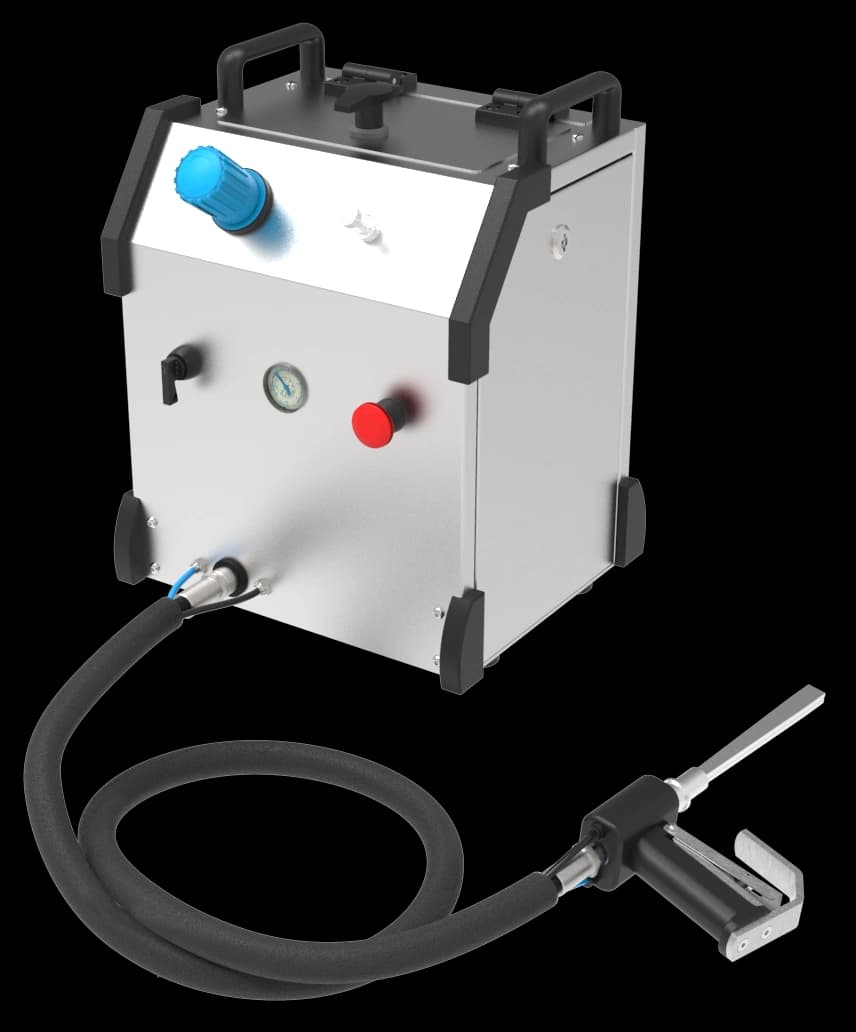 The PureBLAST Nano is a compact, air-driven dry ice blaster for precision cleaning around presses, fixtures, and enclosed tooling. Running entirely on plant air, it enables quick touch-ups without electrical hookups or teardown. Operators can remove light residues and release agents with minimal disruption to production, making it ideal for fast interventions between cycles. Its small footprint and low air demand suit maintenance teams working in crowded cells or on delicate assets.